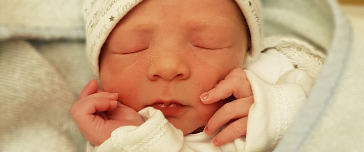 Heel goed voelde ik hoe ik daar naar beneden moest persen en het ging dan ook heel vlot. Na 18 minuten persen was de kleine dan daar en kon ik het ook zelf opvangen en op mijn borst leggen. Tijdens het opvangen zag ik het ineens, mijn oog viel erop en daar was dan de enorme verrassing, het is een JONGEN! Meteen tranen van geluk, het is gelukt, hij is bij ons en het is goed gegaan. Ik kon het even niet geloven dat het mij was gelukt. Oh, en wat was hij perfect volmaakt, ons kereltje! Om 05.33 uur in het Isala ziekenhuis is Naud Daniel geboren en zijn gewicht was 2579 gram!