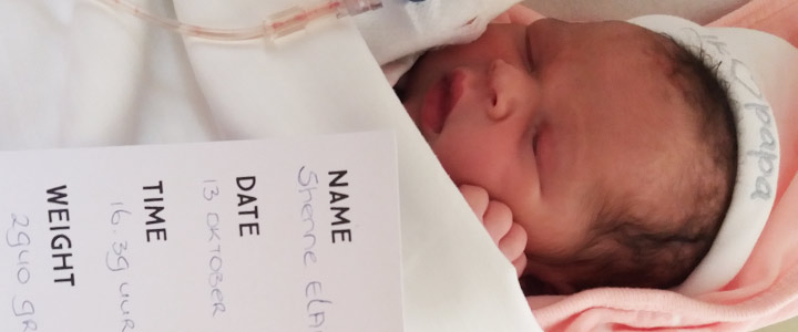 Het werd een hele lange dag, een heftige bevalling, maar om 16.39 uur was ze daar dan eindelijk: onze prachtige dochter Shenne Elaisah . Vrijdag de 13e zal voor ons nooit meer een “ongeluksdag” zijn.