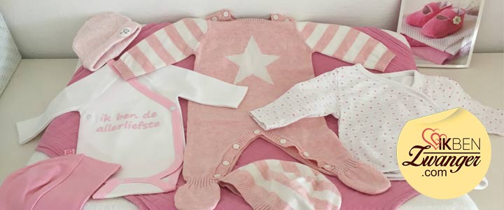 Voor ons meisje nu heb ik ook weer allemaal leuke roze en bloemige meisjeskleertjes. Het meeste heb ik via via. Van mij hoeft ook echt niet alles nieuw. Maar het eerste pakje moet dat wel zijn. Het is inmiddels een heel ding geworden, haar ‘eerste pakje’. Ik heb een lange eisenlijst. Ik weet ook niet waarom, het zal wel iets met hormonen te maken hebben.