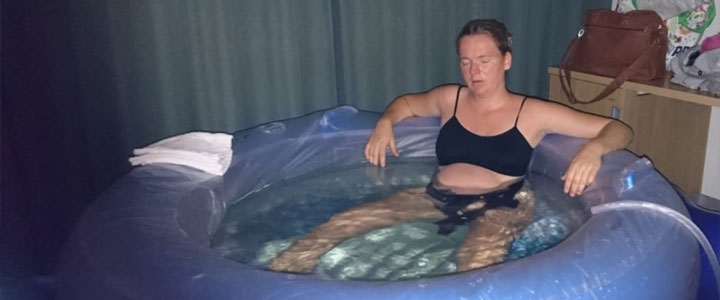 Ik hing over de zachte rand van het opblaasbad en ik begon druk te voelen, dus ik riep heel klassiek “Ik moet poepen”, waarop ze zeiden “Nee hoor, dat is gewoon het hoofd van je meisje wat daar tegenaan drukt.” Dat wist ik ook wel, maar het gevoel te moeten poepen was toch echt hetzelfde.