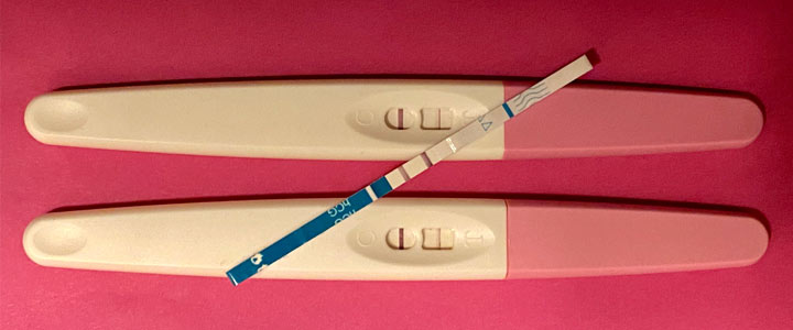 Ik wist het gewoon: ik ben zwanger. Maar dat heb ik wel eens vaker gedacht, zelfs toen ik wel de pil slikte, en toen was het ook niet zo. Dus hup geen aandacht aan besteden en gewoon doorgaan met de alledaagse dingen. En toch bleef het door mijn hoofd gaan. In de ‘ Gezondheidsapp’ van Apple hield ik mijn ovulatie en menstruatie bij. Bijna twee weken na mijn ovulatie heb ik toch maar een test gedaan (dat was voor mij al heeeel lang wachten). En ja hoor, twee strepen.